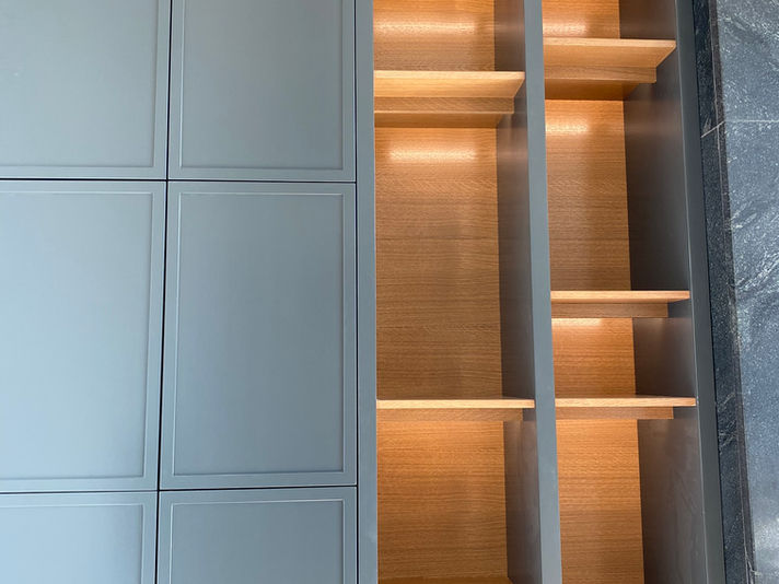 The wall unit was thoughtfully designed to maximize storage capacity while providing easy access to essential items. Various compartments and shelves were crafter to accommodate booksm decorative pieces, and personal memorabilia. To highlight the displayed items and create an inviting ambiance, built-in lighting was added to the unit.